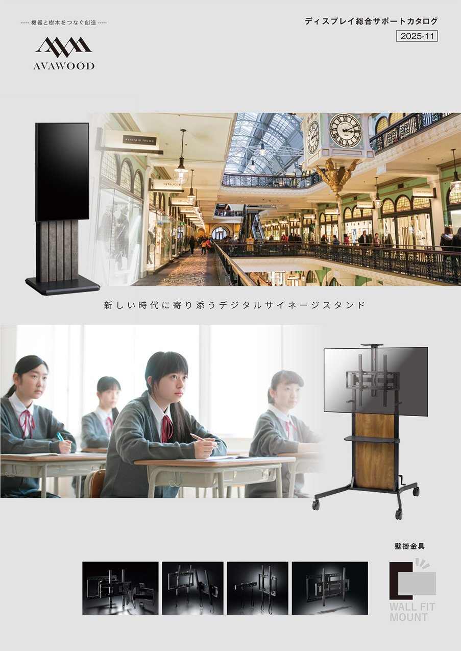 HOME 製品案内 サイネージスタンド AVAWOOD カタログダウンロード AVAWOOD TOP AVAWOODのこだわり AVAWOODラインナップ 製品一覧 販売店一覧 オンラインショップ カタログダウンロード Catalog Download 総合カタログ テレワーク特集 AVAWOOD 2025-11版 お客様サポートSupport HOME 製品案内 サイネージスタンド AVAWOOD カタログダウンロード